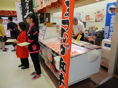 先月、シンガポール伊勢丹で牛肉の試験販売をして来ました。シンガポールには、伊勢丹、高島屋、明治屋が進出しています。日本の農作物については、信頼性が高く、食品売場は日本産農産物があふれ、まるで日本のスーパーに入ったような錯覚になります。魚売り場も、種類が豊富で充実していて、その中でも、にぎり寿司のパック詰めは人気があり、たくさん並べてありました。野菜コーナーは、日本産の野菜が多く、福岡産、宮崎産、熊本産というように産地が表示してあり、価格は日本より20%高く販売されてました。米のコーナーでは、魚沼産コシヒカリや秋田こまちなど日本各地の銘柄米の隣に、ベトナム、タイ、アメリカ、オーストラリア産のコシヒカリが所狭しと並べられていたのには驚きました。日本の牛肉については、美味しさ、柔らかさ、風味等で評価は大変高いが、価格も高いので、消費の80%がアメリカ和牛オーストラリア和牛と表示された牛肉でした。(外国で生産されたものが、“和牛”と表示されているのには、びっくりしました…。)今回は、銘柄牛である「近江牛」「伊賀牛」と松永牧場で育った交雑牛(ホルスタインと和牛のかけあわせで産まれた牛)を販売しました。交雑牛としては、通用しないので「ハーフ牛」と表示し販売しました。シンガポールでも健康志向が強く、脂肪の多い肉を嫌う傾向にあります。価格的に安くて、脂肪の少ない交雑牛は大変好評で、一週間の予定の銘柄牛フェアは、前半3日間でほぼ完売しました。今後、生産履歴等、消費者に安心感を与える販売活動を進めていければ、牛肉の輸出は明るいと思います。